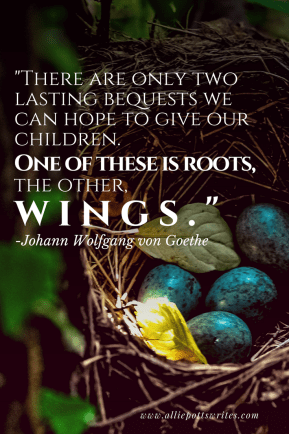 Her babies are hatched, though because they not self-sufficient, it is critical that she spread her wings and brave the unknown in order to ensure everyone, herself included, reach their full potential. Baby birds have to eat, but also they need to be shown how to be the best sort of birds, which means, eventually, Momma bird has to get over her fears, remember how to fly, and lead by example.